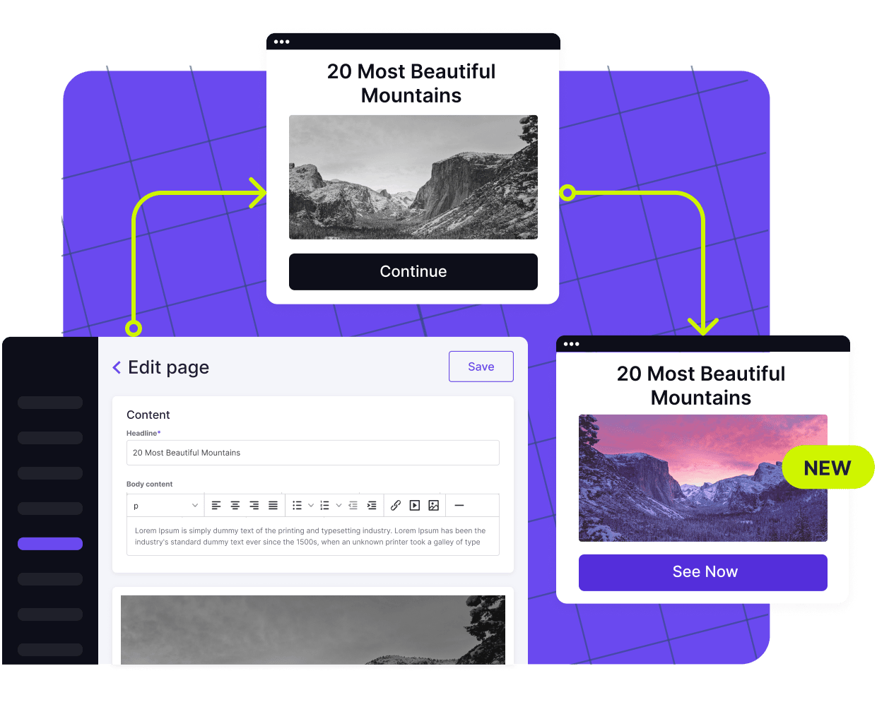 Iterate your landing pages to get the best out of your marketing funnel. Each modification takes seconds.